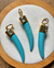 Pingente de dente de pedra turquesa. Com acabamento dourado.